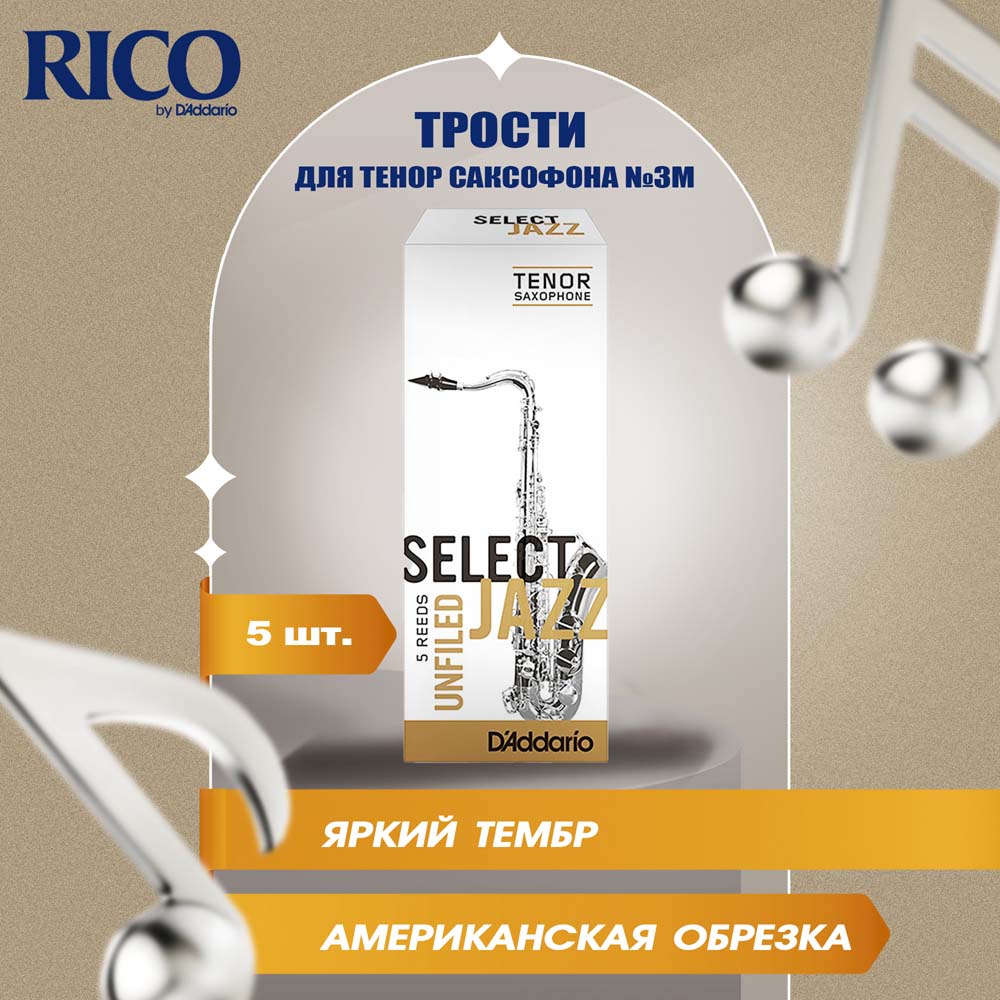 Трости для тенор саксофона Rico Select Jazz unfiled №3M (5 шт)