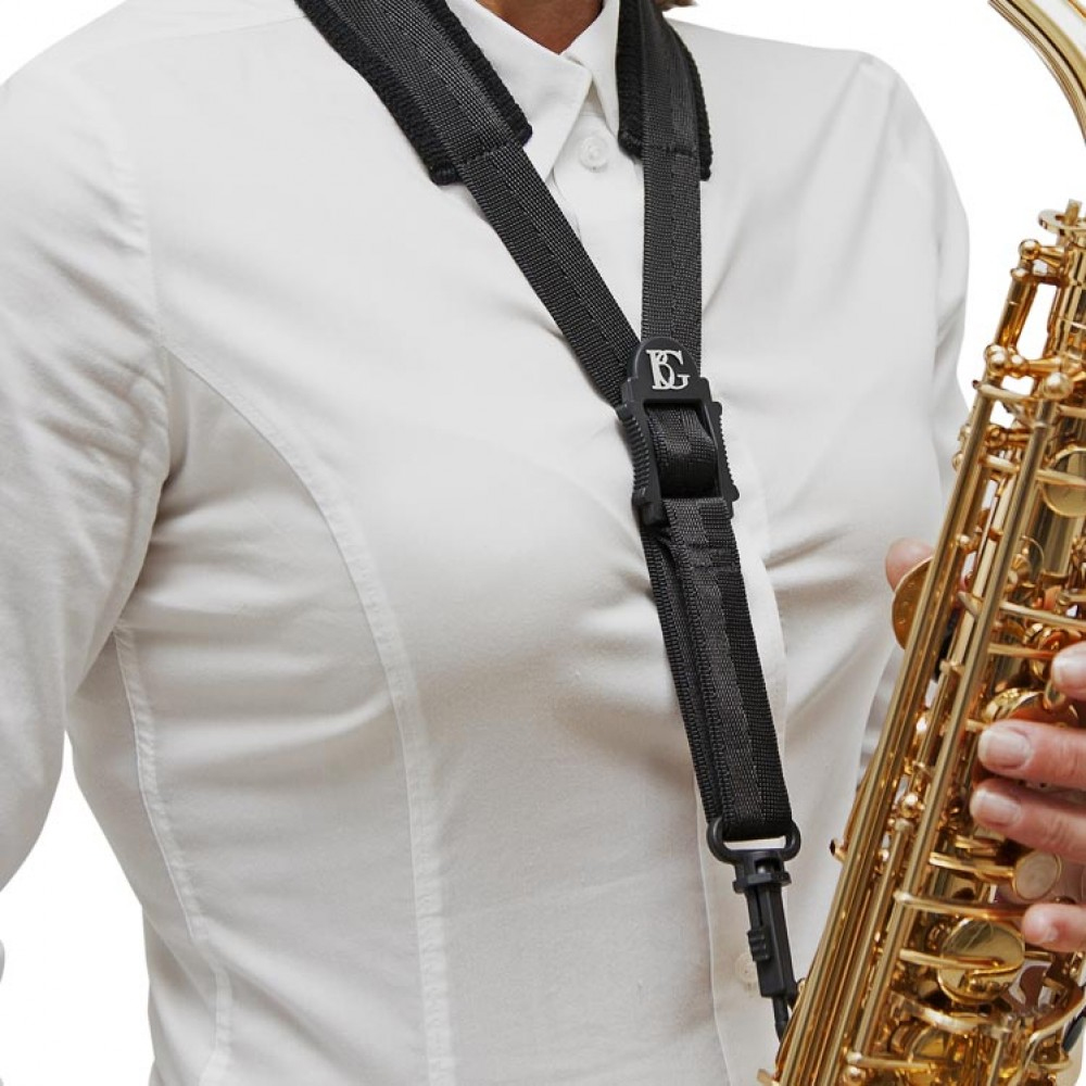 Ремень для саксофона BG c пластиковым карабином равномерно распределяет вес инструмента на плечи, а не на шею. Позволяет комфортно держать большой саксофон. Пластмассовый карабин надежно держит инструмент даже во время самого сложного и напряженного выступления.