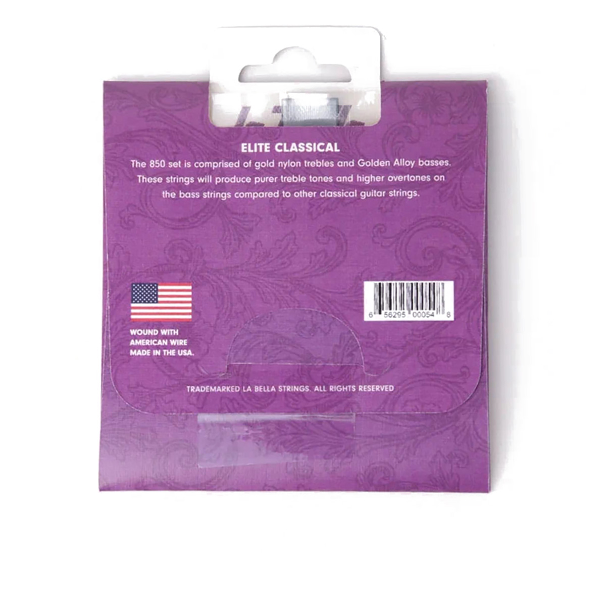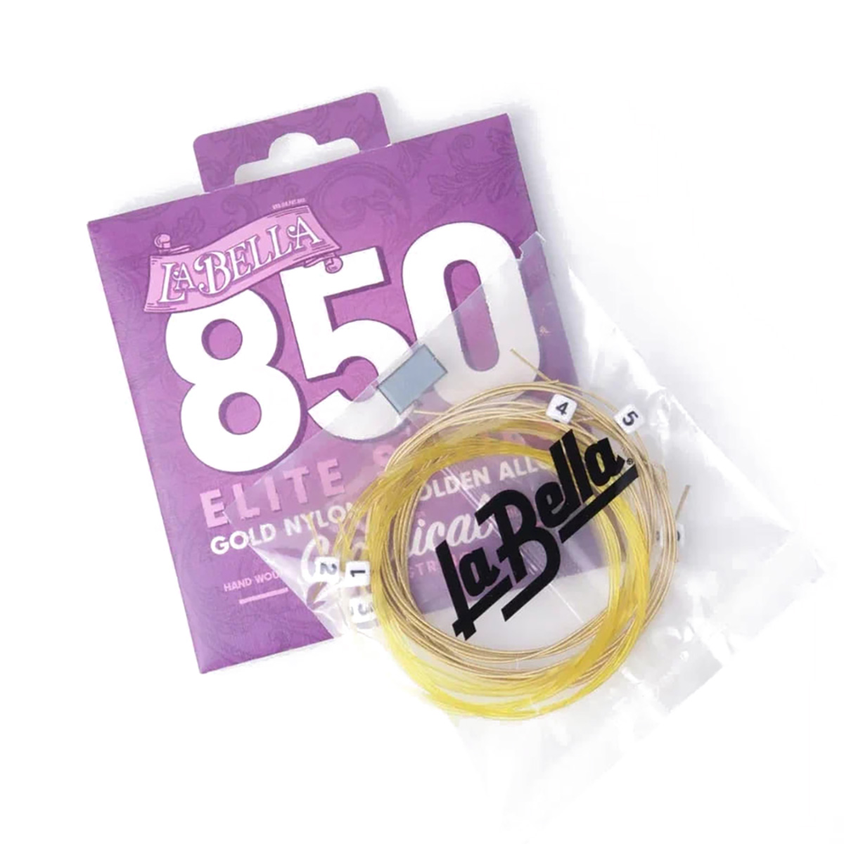 Комплект 850 предназначен для более деликатных классических гитар и включает в себя первые струны из золотого нейлона и басовые струны с оплеткой из сплава Golden Alloy.